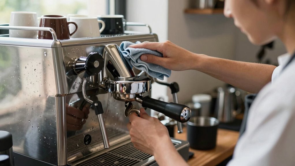 - Establish a consistent cleaning schedule for portafilters, brew baskets, and drip trays to prevent residue buildup.
