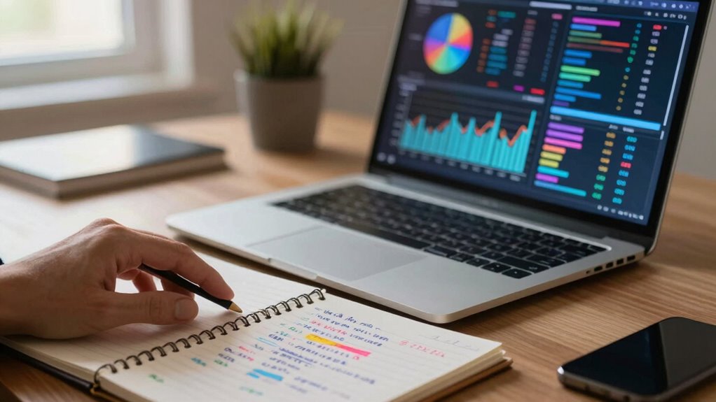 You should spend about 15-20 minutes on each topic using the Explain-It test. This study duration helps you maintain focus balance and guarantees you actively engage with the material without burnout. If you find yourself struggling to explain a concept clearly, spend more time reviewing it. Conversely, if you can explain it confidently, move on and revisit later to reinforce your understanding. Adjust time based on your familiarity with the topic.
