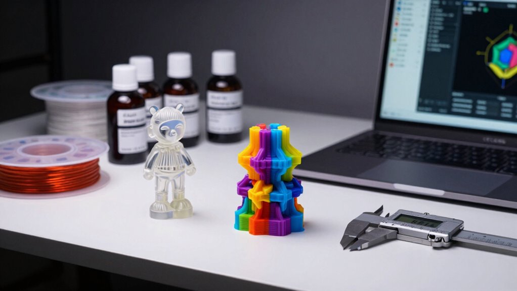 FDM and resin 3D printing serve different needs. FDM uses melted filament to build larger, durable parts with visible layer lines, making it good for prototypes and functional projects. Resin printing uses liquid resin to produce highly detailed, smooth models perfect for miniatures or jewelry. If you want to learn more about the strengths and best uses of each method, there’s plenty to discover in the details ahead.