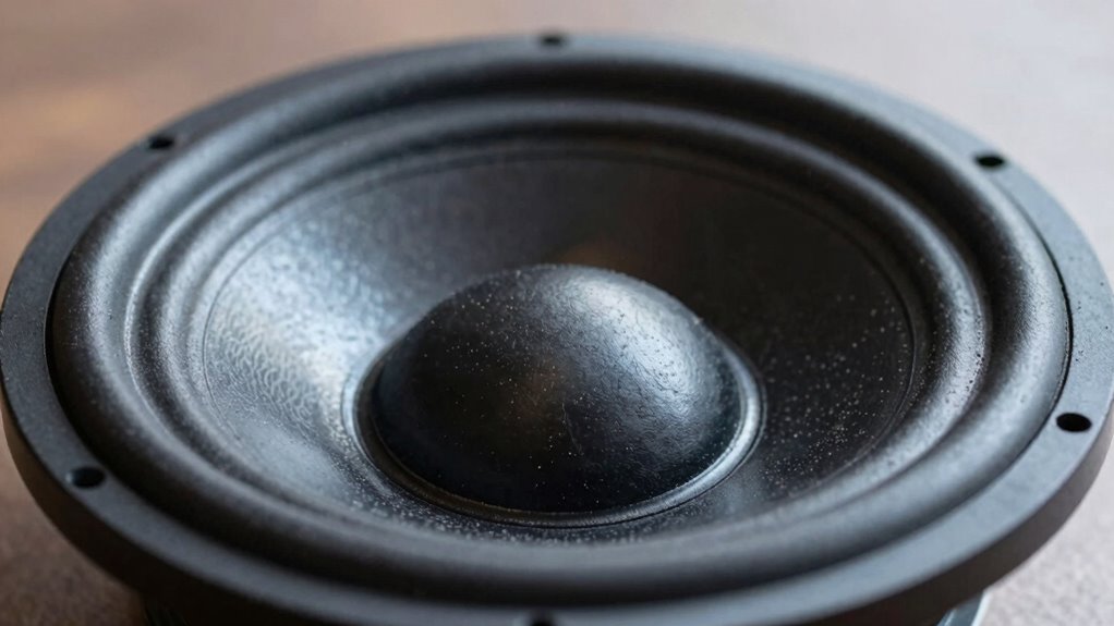 Frequency response is another critical factor that shapes your subwoofer’s sound quality. It refers to the range of low frequencies the sub can produce and how accurately it reproduces them. A subwoofer that emphasizes only the lowest frequencies might seem impressive initially, but it can drown out mids and highs, creating a distorted or boomy sound. When you focus solely on increasing volume or “more bass,” you risk sacrificing clarity. A subwoofer with a well-defined frequency response covers a broader, more balanced range, ensuring that bass complements the rest of your audio rather than overpowering it. This balance helps your system sound more natural, making music, movies, or games more immersive without becoming fatiguing. Additionally, understanding the room acoustics can help optimize your subwoofer placement and performance.
