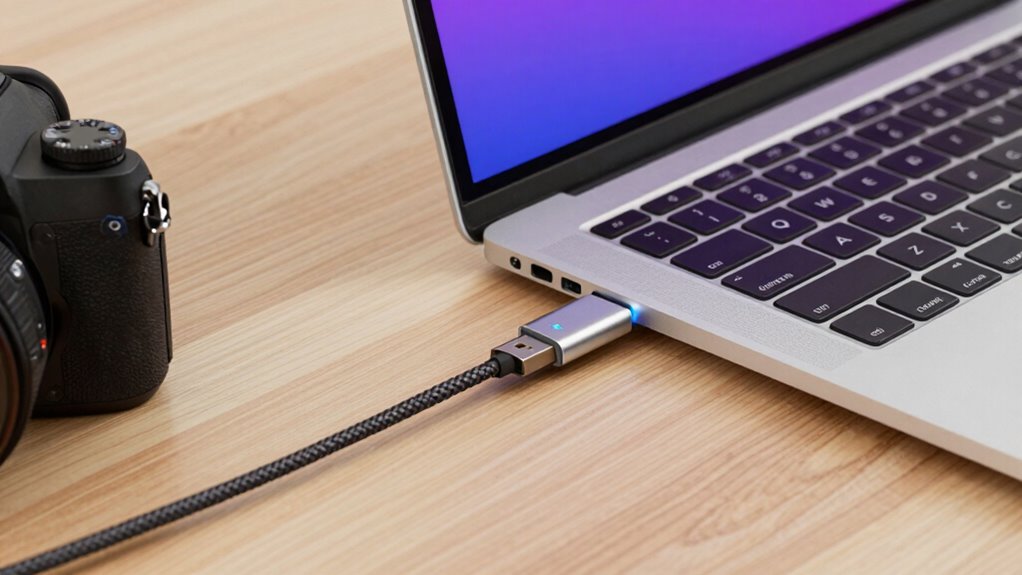 To keep your laptop running smoothly, it’s best to choose the right USB-C power delivery setup. By paying attention to your charger’s wattage and compatibility, you guarantee your device gets just the right amount of power—nothing more, nothing less. Remember, sometimes a little extra care in your setup can lead to a more seamless experience. After all, a well-powered laptop is like a well-tended garden—thriving quietly beneath the surface.