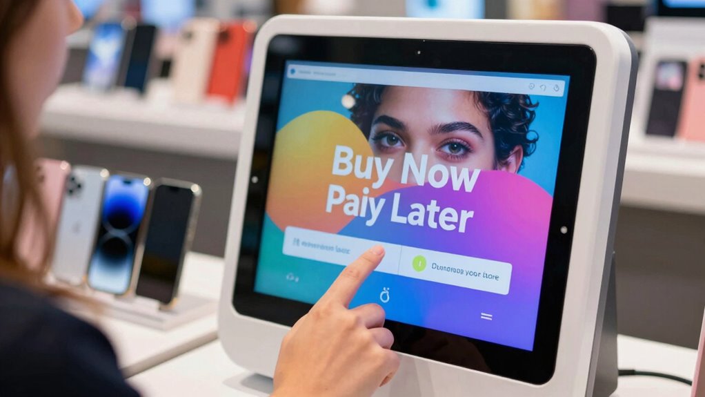 When you click “Buy Now, Pay Later,” you’re accessing a service that pays the retailer upfront while letting you split payments over time, often interest-free. Behind the scenes, BNPL companies make money from merchant fees, late charges, and data monetization, while marketing tactics encourage impulsive spending. Although convenient, it’s important to understand the risks and costs, so you stay in control of your finances. If you want to see what really happens behind the button, keep exploring.