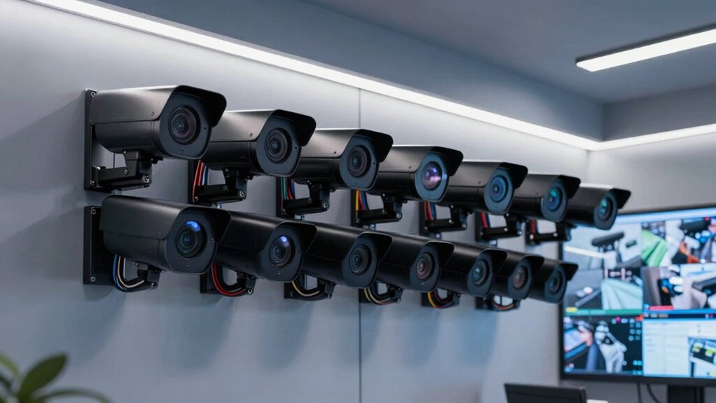 Ever wonder how security cameras keep your data private? I guarantee my cameras use encrypted storage and secure network protocols, so your footage stays safe. Most systems offer local storage options like DVRs or NVRs, reducing exposure to hacking, while some use cloud storage with advanced security measures. I always recommend choosing reputable brands that prioritize privacy features to keep your footage confidential and protected from unauthorized access.