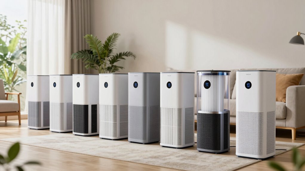 - Coverage capacity varies from compact units for 500 sq ft to large-area purifiers exceeding 3,800 sq ft.
