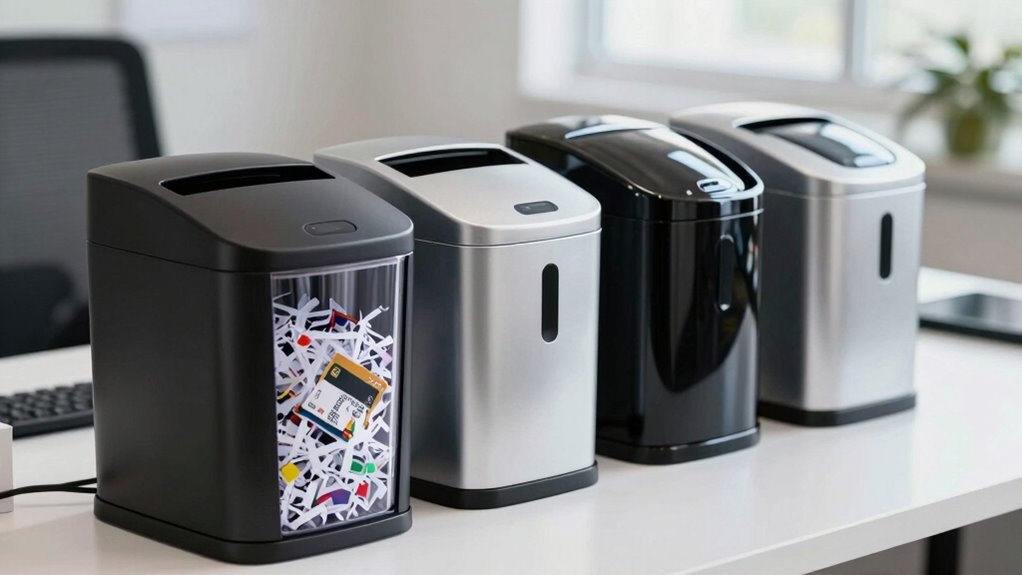 If you’re searching for the best paper shredders to securely destroy credit cards in 2026, I recommend considering models with high security levels like P-4, crosscut or micro cut designs, and media compatibility. Look for features such as jam-proof technology, large waste bins, and easy operation for smooth, continuous shredding. Stay tuned—I’ll share detailed insights on top options that balance security, capacity, and user convenience for your needs.