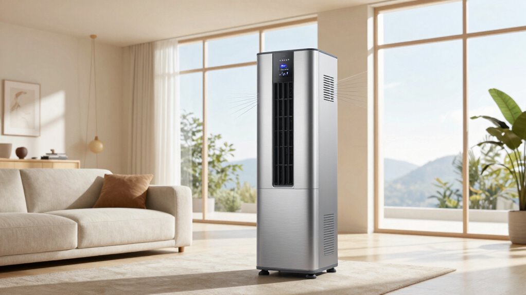 Portable air conditioners typically produce a gentle hum during operation, with noise levels ranging from about 50 to 70 decibels. I find that quieter models operate at a whisper-like whisper, perfect for peaceful spaces. While some might mention a modest mechanical murmur, I suggest choosing units with sleep or quiet modes to minimize disturbance. Overall, I find most portable ACs comfortably quiet, making cool comfort a calm, quiet, and cozy experience.