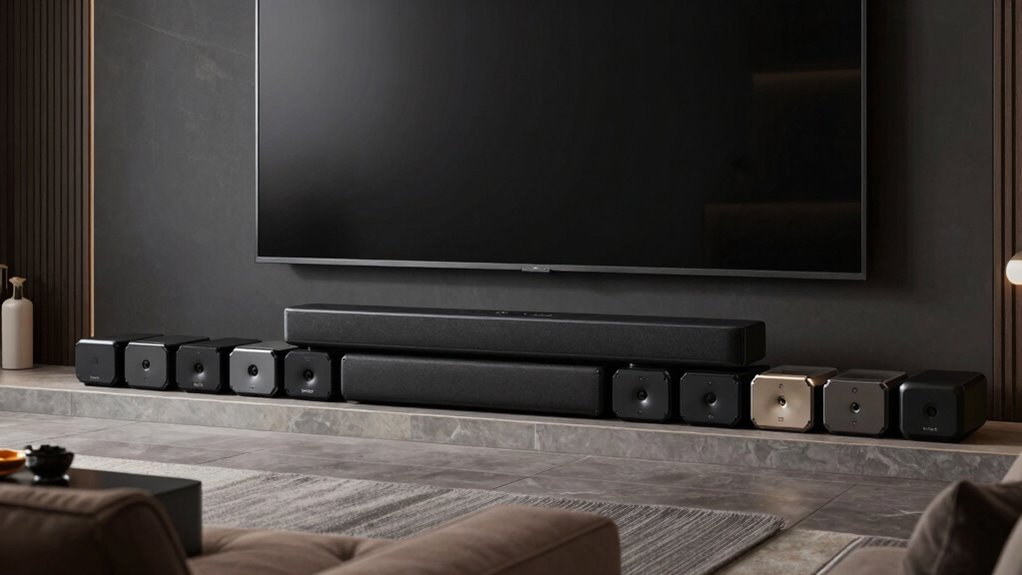 Choosing the right soundbar can feel overwhelming, but remember, it’s about balancing quality with your space. Whether you want immersive surround sound or simple clarity, the perfect setup is within reach. Think of it like the difference between a quiet whisper and a booming concert—both can be incredible, but only if they fit your needs. So, don’t just settle for good enough; find the sound that transforms your home theater into an experience.