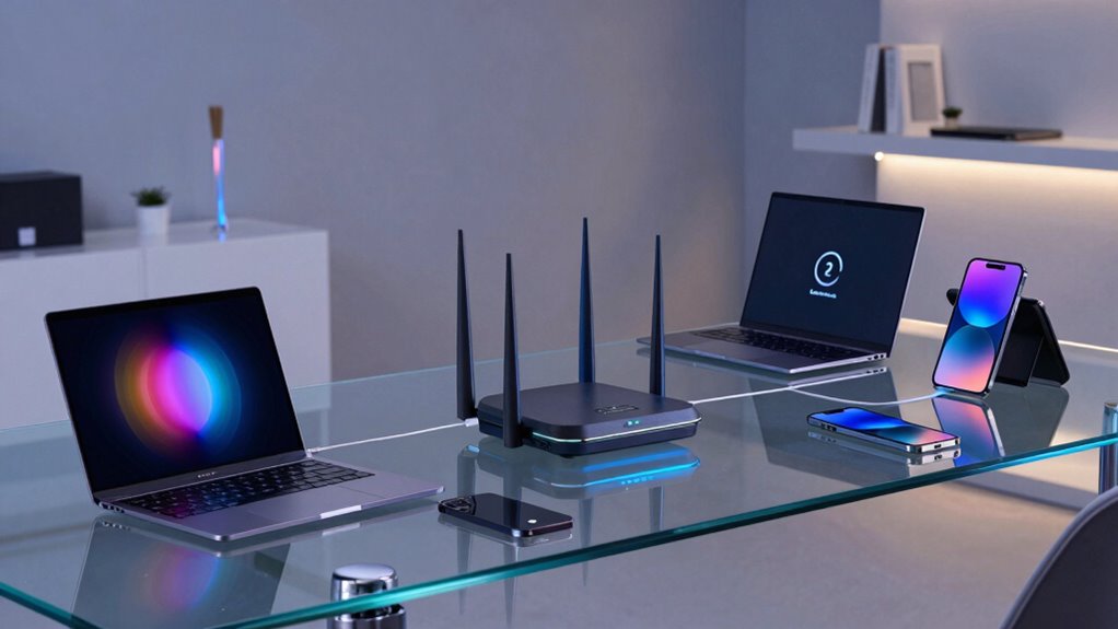 When choosing a WiFi 7 router for many devices, I focus on key factors like device compatibility, coverage, speed, security, and wired options. These elements guarantee the router can handle your network demands efficiently. Let’s look at each point so you can pick the best fit for your setup.