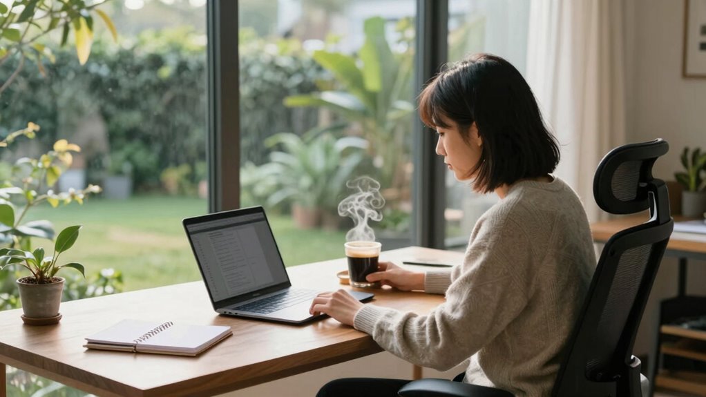 This layout minimizes distractions and physical discomfort, allowing you to maintain concentration. Keep essentials within arm’s reach, and prioritize ergonomic adjustments to suit your body. An optimized workspace isn’t just about aesthetics—it’s about creating an environment that supports sustained focus and productivity during your deep work sessions.