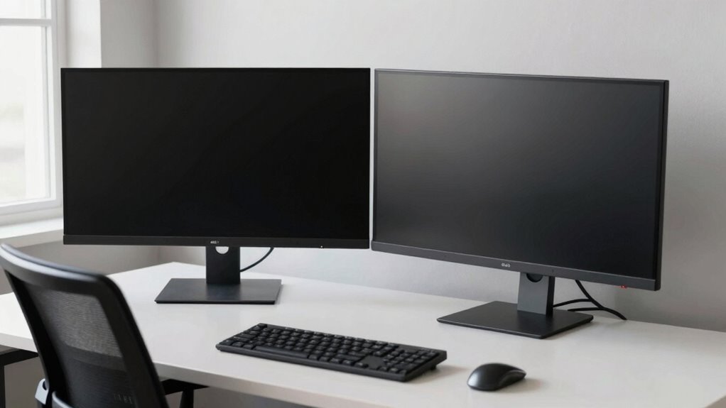 Yes, dual monitors can boost your productivity considerably. You’ll find it easier to multitask and switch between applications with less time wasted. Proper ergonomic keyboard and mouse placement, combined with the right monitor angles, reduces fatigue and discomfort, helping you work more efficiently. Instead of constantly toggling windows, you get a broader workspace, streamlining your tasks and maintaining focus longer.