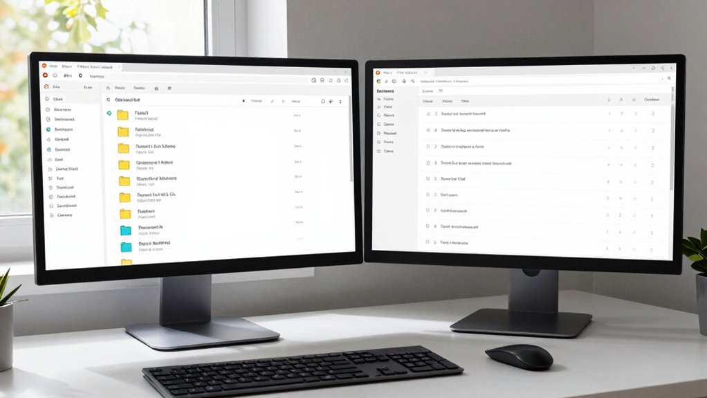 You can support the two-window setup with email organization and productivity tools like Microsoft Outlook, Mailbird, or Spark. These apps let you split your inbox into multiple windows or panes, making it easier to manage emails efficiently. By using such software, you streamline your workflow, reduce clutter, and stay focused. Explore their features to customize the two-window setup, helping you stay organized and boost your productivity.
